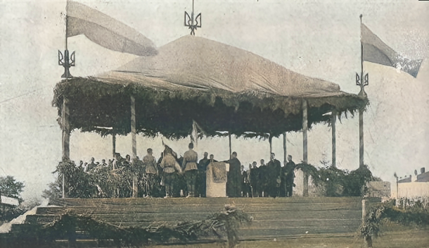 На фото – 14 жовтня 1919 року, місто Кам’янець-Подільський, урочиста присяга війська, урядових і громадських установ на вірність Українській Народній Республіці.